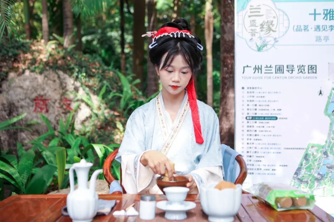 “兰缘盛荟·花开越秀”文旅周期间,园区精心设置了“古风十雅”国潮互动。莳花、焚香、品茗、听雨……届时不仅有古风NPC与你互动,还有各种定点秀等你观赏。人在景中走,宛如画中游!