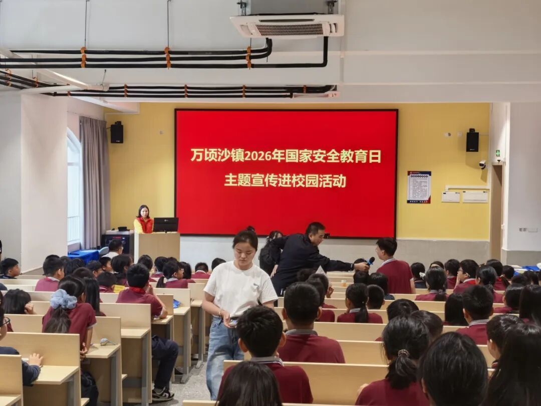 除了面向社区群众,万顷沙镇还将国家安全宣传教育延伸至校园。在广州南外实验学校多媒体教室里,万顷沙派出所警官联合镇平安法治办公室志愿者们,一起将“国家安全在我心中”的法治讲座带给学校师生。讲座通过播放动漫短片、案例分析、互动问答等形式,用通俗易懂的语言为同学们讲解了国家安全的重要性、青少年如何维护国家安全等内容。