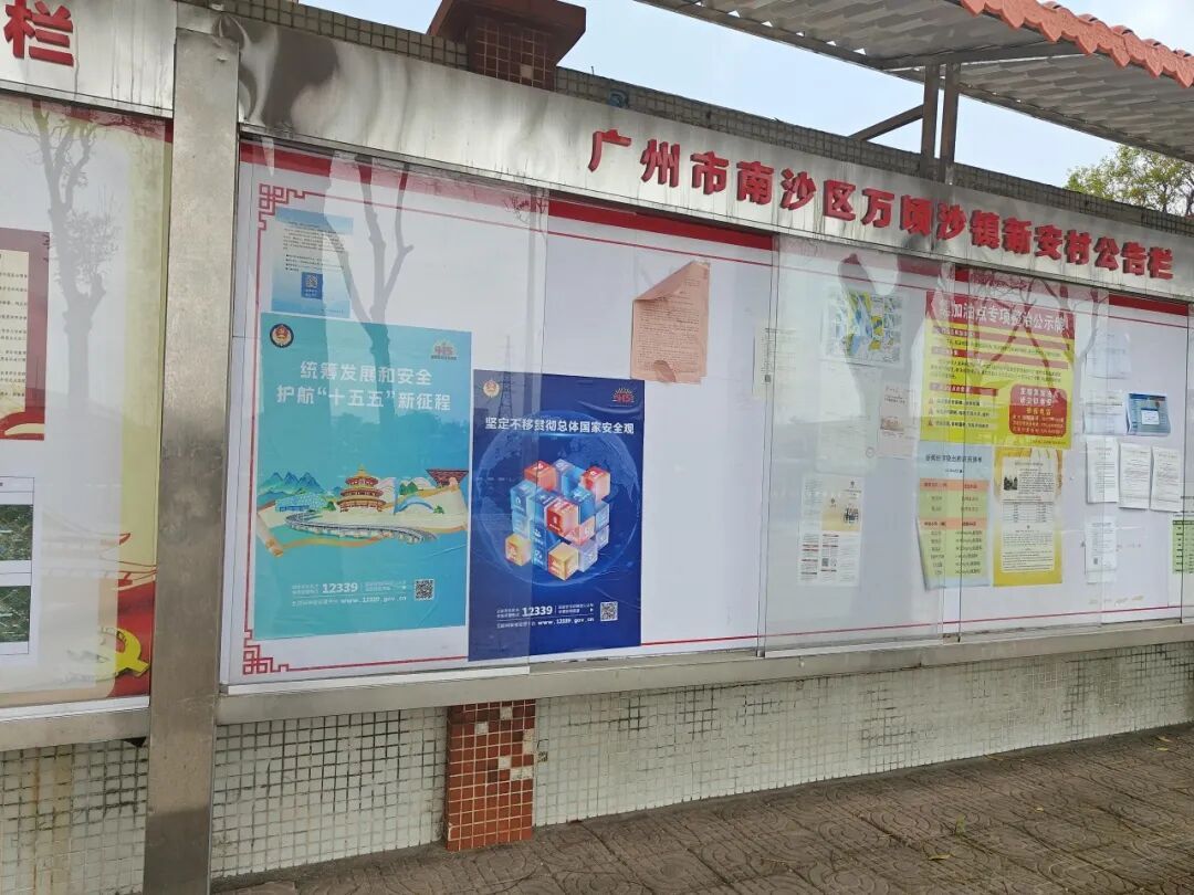 为了将国家安全宣传的触角延伸到各村居,志愿者们在各村(社区)公告栏张贴宣传海报,利用LED显示屏滚动播放国家安全标语和宣传片,让群众在日常出行途中就能潜移默化地接触到国家安全知识。
